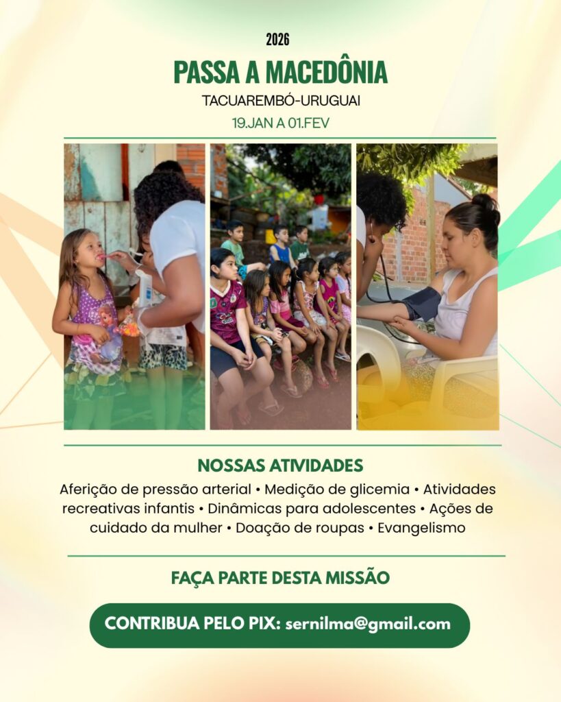 Os Missionários estarão saindo do Brasil dia 19 de Janeiro de 2026, para iniciar essa linda missão.